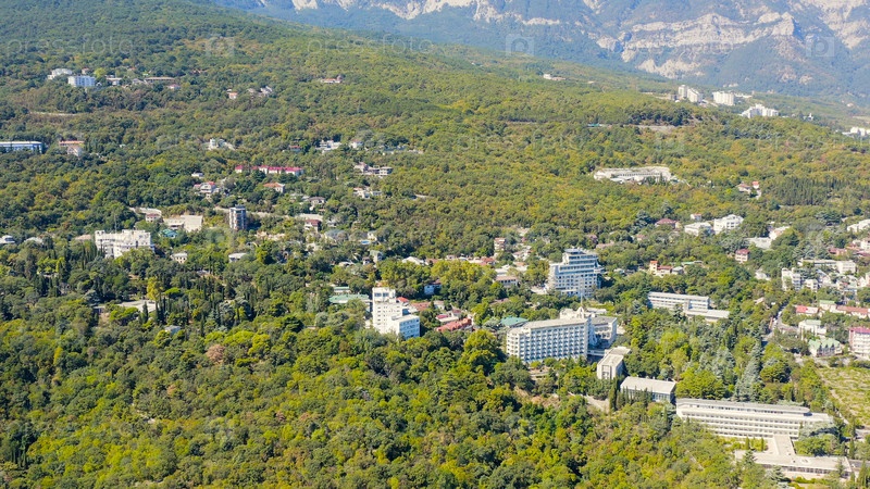 Панорама города и парков в солнечную погоду, Вид с воздуха