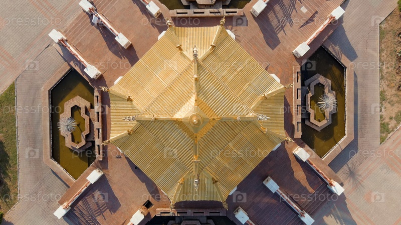 Элиста, Россия.Пагода семи дней - пагода на центральной площади Ленина, вид с воздуха