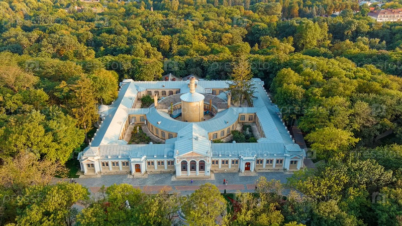 Есентуки, Россия. Лучшие бани. Курортный парк. Парк культуры и отдыха. Время захода солнца, Aerial View