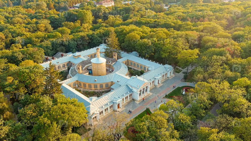 Есентуки, Россия. Лучшие бани. Курортный парк. Парк культуры и отдыха. Время захода солнца, Aerial View