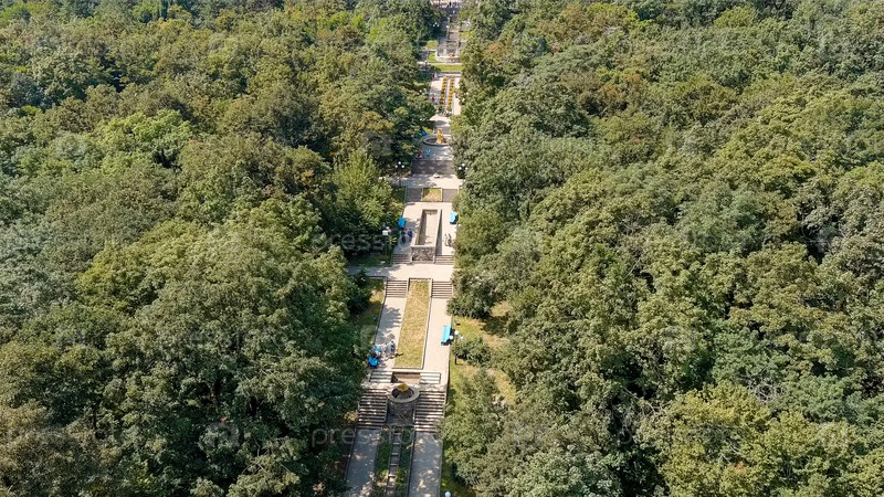 Железноводск, Россия. Источник Смирнова. Вершина Каскадной лестницы в спа-парке. Городской курорт, Aerial View