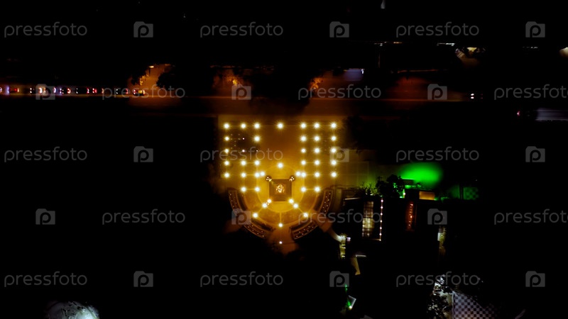 Симферополь, Крым. Памятник Екатерине Великой. Ночь, вид с воздуха, головной удар