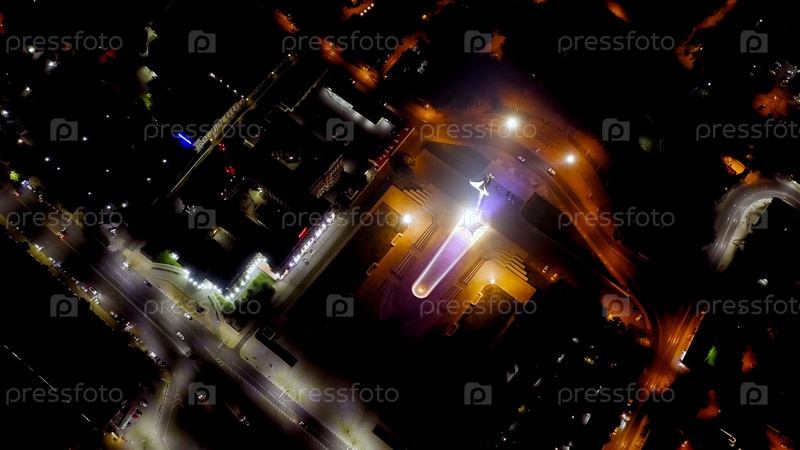 Ростов-на-Дону, Россия.Стелла освободителям Ростова.Театральная площадь.Ночной вид, взгляд с воздуха