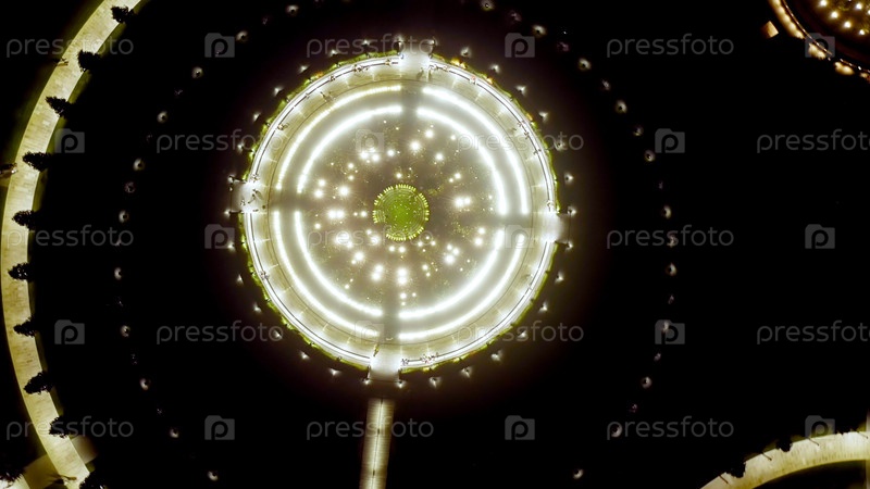 Краснодар, Россия. Общественный парк - Краснодар. Летающий над парком ночью, вид с воздуха