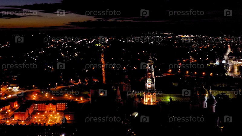 Сергиев Посад, Россия.Троица-Сергийская Лавра - крупнейший мужской монастырь Русской Православной Церкви с долгой историей.Расположен в центре Сергиева Посады.В ночное время вид из воздуха
