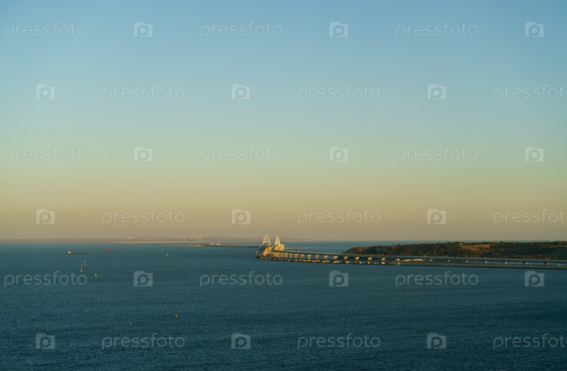 Крымский мост во время захода солнца Летом Керчь