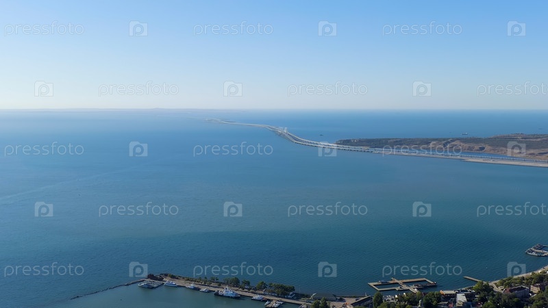 Керч, Крым. вид на новый крымский мост. чистая погода, взгляд с воздуха