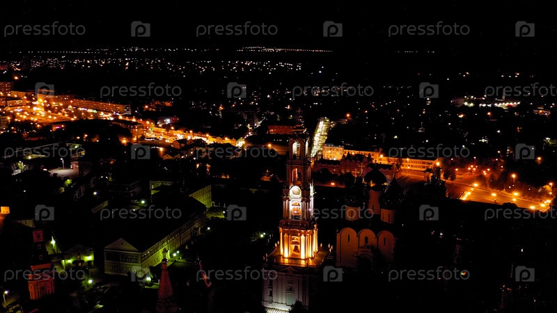 Сергиев Посад, Россия.Троица-Сергийская Лавра - крупнейший мужской монастырь Русской Православной Церкви с долгой историей.Расположен в центре Сергиева Посады.В ночное время вид из воздуха