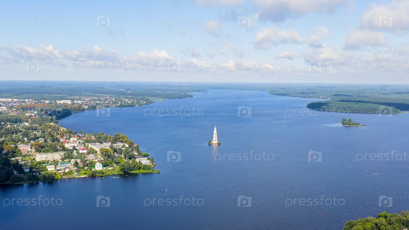 Колокольня собора Святого Николая (известная как затопленный колокол), вид с воздуха