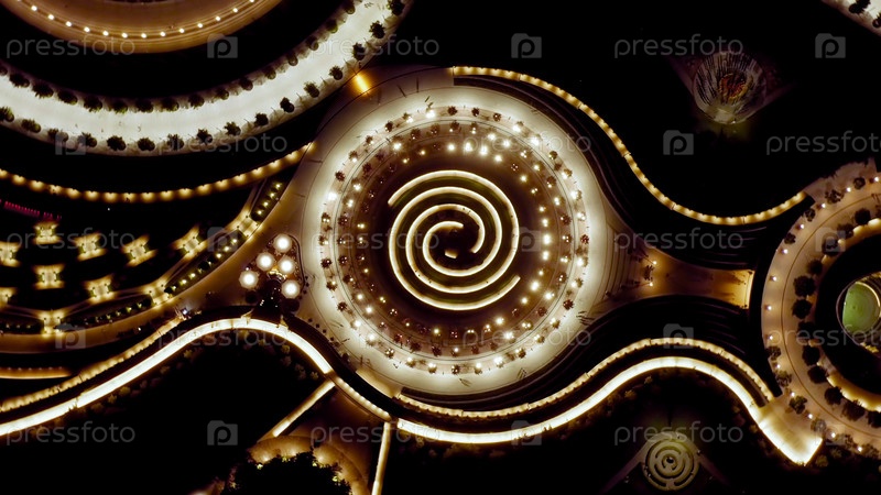 Краснодар, Россия. Общественный парк - Краснодар. Летающий над парком ночью, вид с воздуха