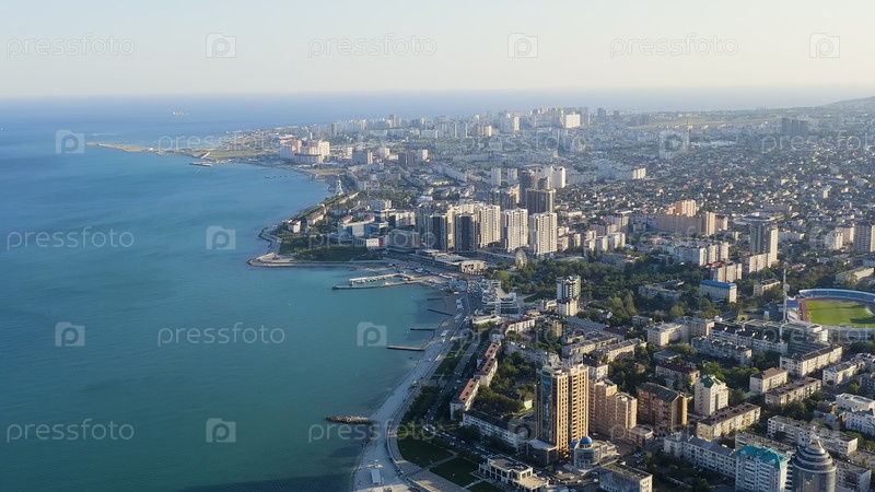 Новороссийск, Россия.Панорама города и набережной.Залив Цемес в Черном море, взгляд с воздуха