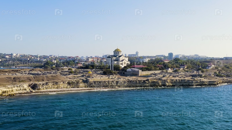 Севастополь, Крым. Владимирский собор в Херсонессе. Херсонская Таурида - основана древними греками на полуострове Геркулеса на крымском побережье, вид с воздуха