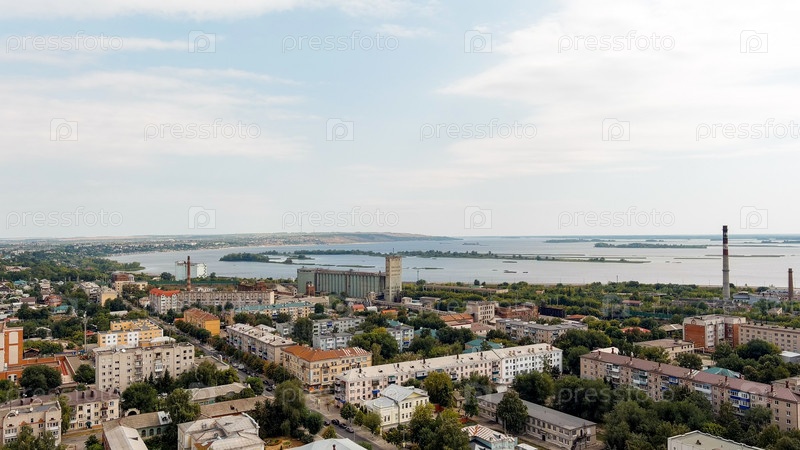 Блядь, Россия.Индустриальная зона.Панорамный вид на город и реку Волгу.Советская улица, Aerial View