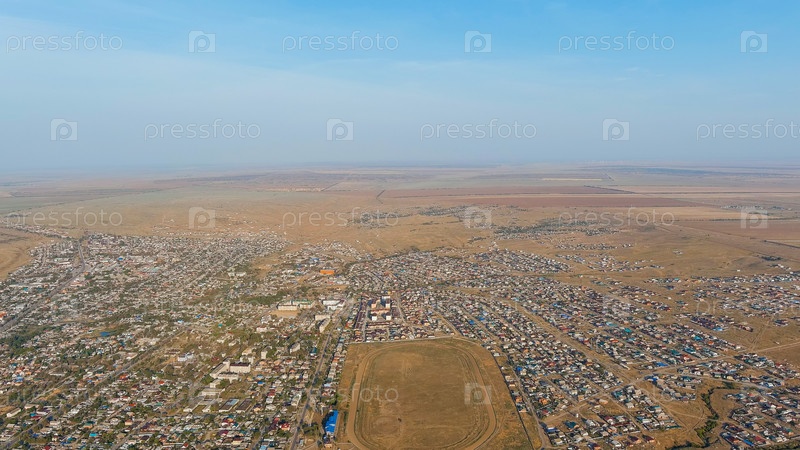 Панорама города утром, вид с воздуха