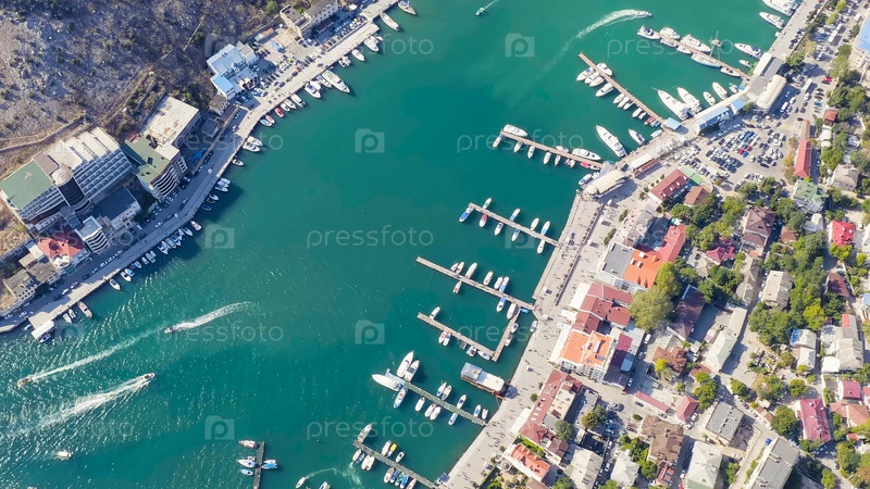 Балаклавская бухта с яхтами и рекреационными лодками, Aerial View