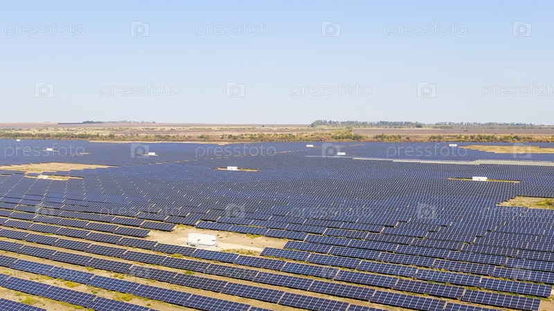 Солнечная электростанция в ясный солнечный день, Aerial View