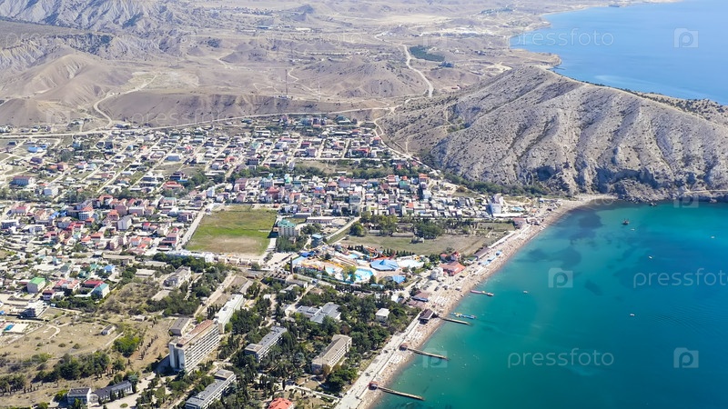Судак, Крым. набережная Судака. побережье Черного моря с пляжами, Aerial View Sud