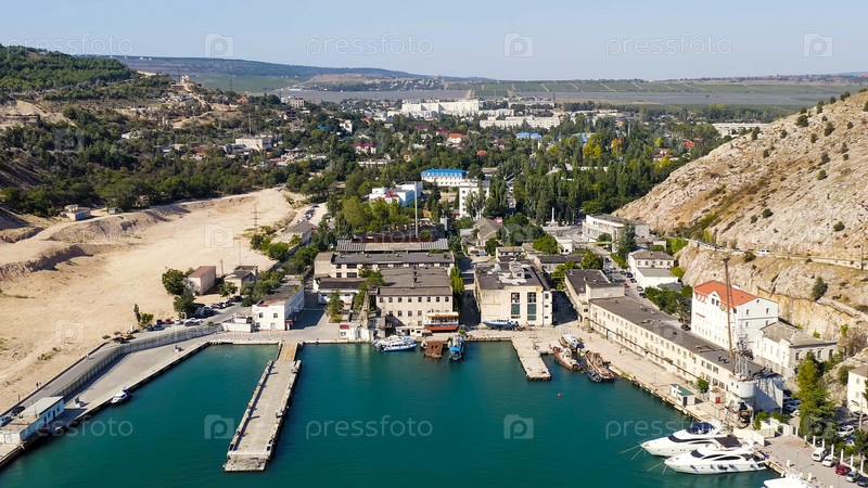 Балаклавская бухта с яхтами и рекреационными лодками, Aerial View