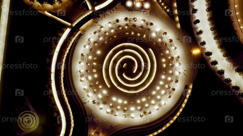 Краснодар, Россия. Общественный парк - Краснодар. Летающий над парком ночью, вид с воздуха