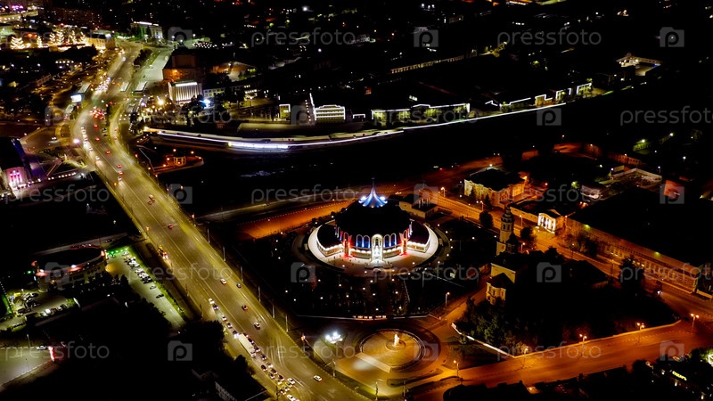 Тула, Россия - 22 августа 2020 года: Вид из воздуха на город ночью