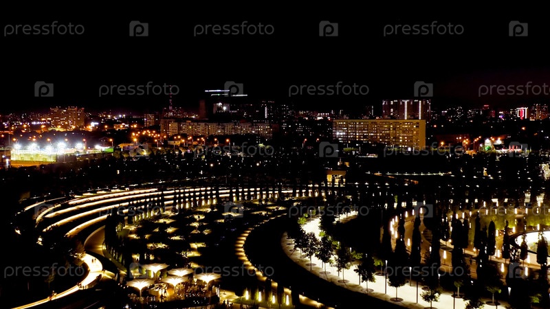 Краснодар, Россия. Общественный парк - Краснодар. Летающий над парком ночью, вид с воздуха