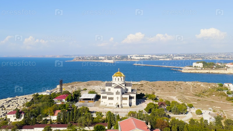 Севастополь, Крым. Владимирский собор в Херсонессе. Херсонская Таурида - основана древними греками на полуострове Геркулеса на крымском побережье, вид с воздуха