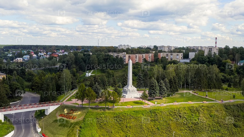 Ржев, Россия - 20 августа 2020 года: Обелиск Освободителям Ржева, взгляд с воздуха