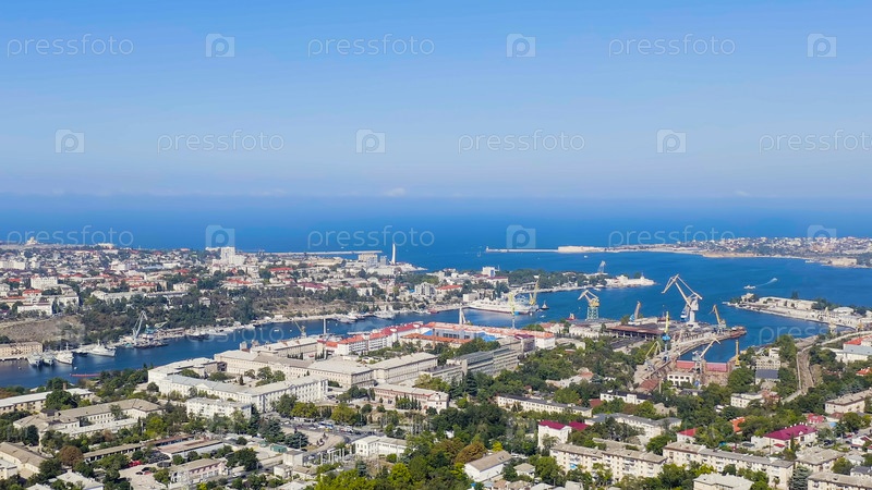 Севастополь, Крым. заливы города Севастополя летом в солнечную погоду. суда, вид с воздуха
