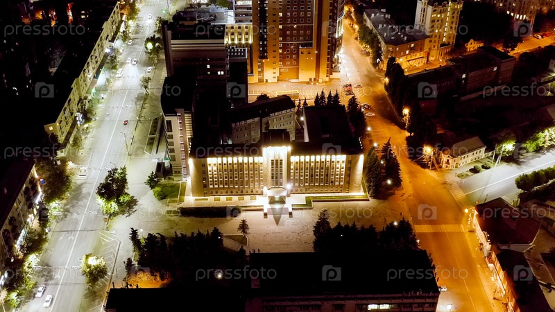 Воронеж, Россия.Воронежская областная дума.Ночной вид города, взгляд с воздуха