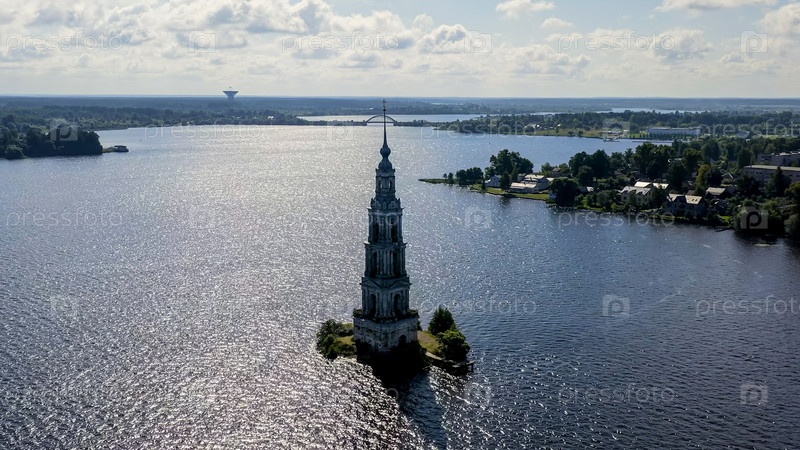 Колокольня собора Святого Николая (известная как затопленный колокол), вид с воздуха