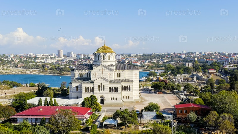 Севастополь, Крым. Владимирский собор в Херсонессе. Херсонская Таурида - основана древними греками на полуострове Геркулеса на крымском побережье, вид с воздуха