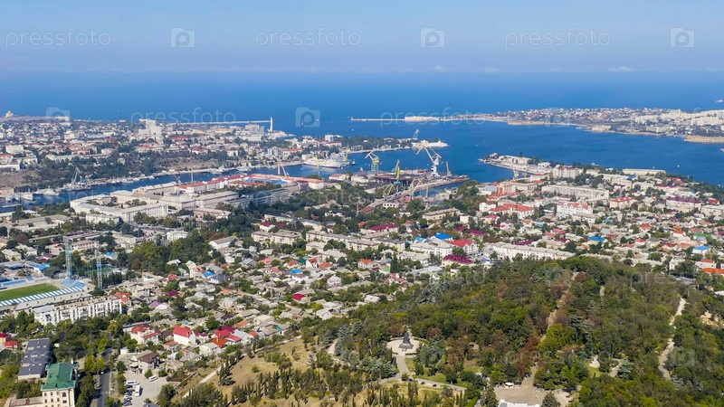 Севастополь, Крым. заливы города Севастополя летом в солнечную погоду. суда, вид с воздуха