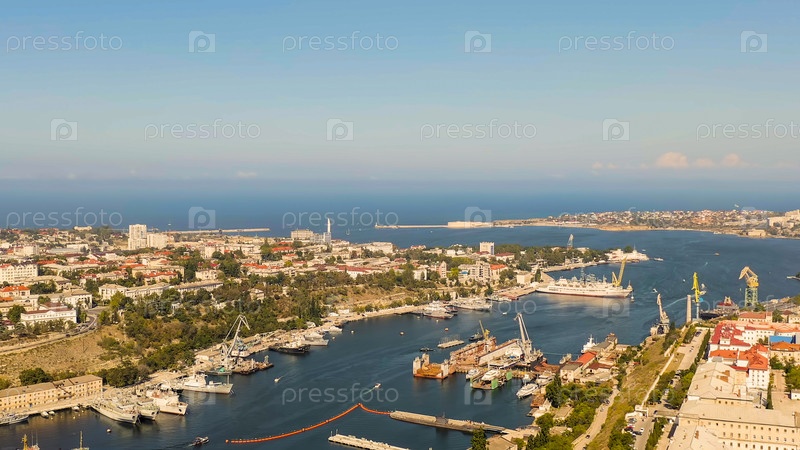 Севастополь, Крым. заливы города Севастополя летом в солнечную погоду. суда, вид с воздуха