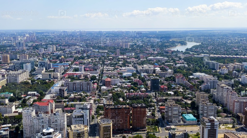Краснодар, Россия.Новые жилые дома на Кубанской набережной.Река Кубань.Полёт над городом летом, вид с воздуха