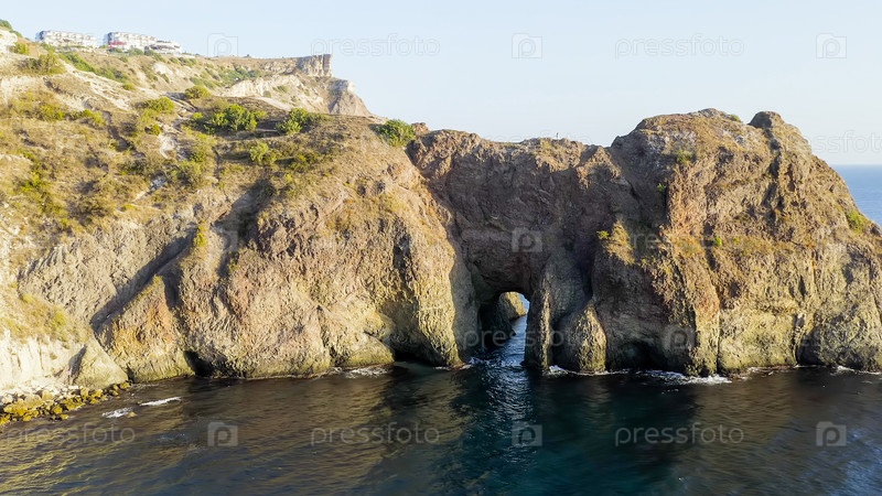 Кримская пещера Дианы - достопримечательность, расположенная в одном из шпоров Фиолента - мыс Лермонтов, вид с воздуха