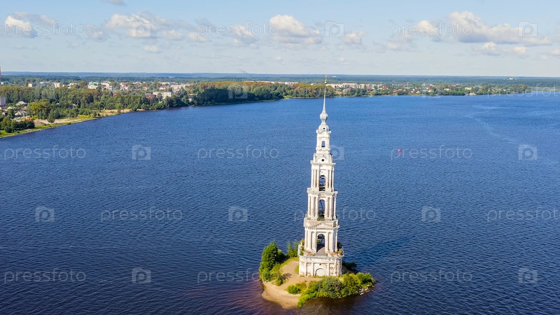 Колокольня собора Святого Николая (известная как затопленный колокол), вид с воздуха