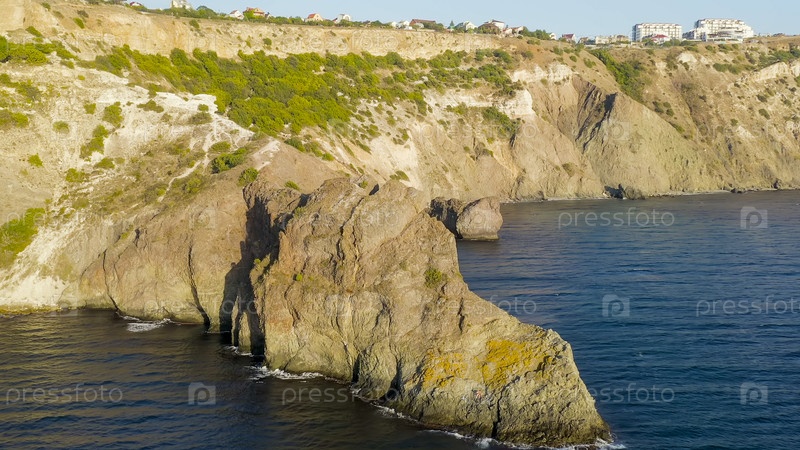 Кримская пещера Дианы - достопримечательность, расположенная в одном из шпоров Фиолента - мыс Лермонтов, вид с воздуха