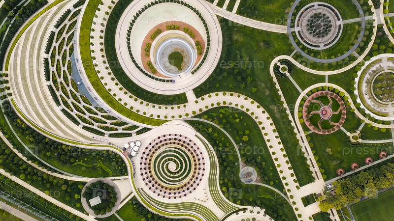 Краснодар, Россия. общественный парк краснодара (галисийский парк). летний вид с воздуха, взгляд из воздуха, голова над снимком