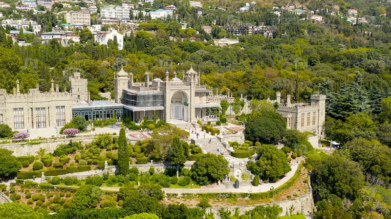 Алюпка, Крым. Воронцовский дворец. Готический особняк XIX века с хорошо сохранившимися залами и живописным парком площадью 40 гектаров. Дворец был построен в 1828-1848 годах