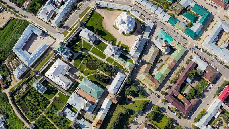Ростов, Россия.Ростовский Кремль.Главная достопримечательность города Ростова Великого, Вид с воздуха, Голова Over Shot