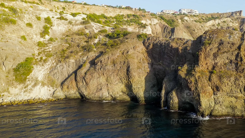 Кримская пещера Дианы - достопримечательность, расположенная в одном из шпоров Фиолента - мыс Лермонтов, вид с воздуха