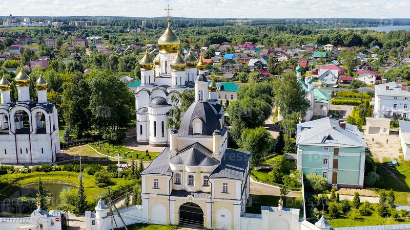 Переславль-Залеский, Россия. монастырь святого Николая Переславского. облачная погода, лето, вид с воздуха