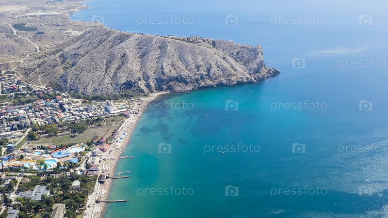Судак, Крым. набережная Судака. побережье Черного моря с пляжами, Aerial View Sud