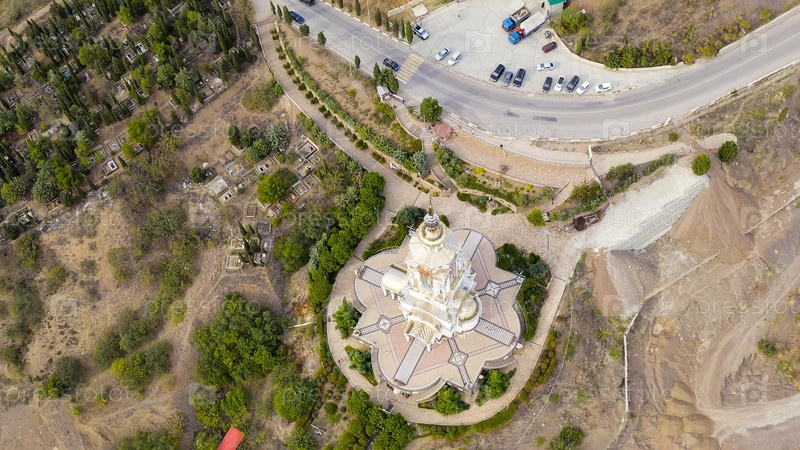 Малореченское, Крым.Маяк Храм Святого Миколи Чудотворца, Вид с воздуха
