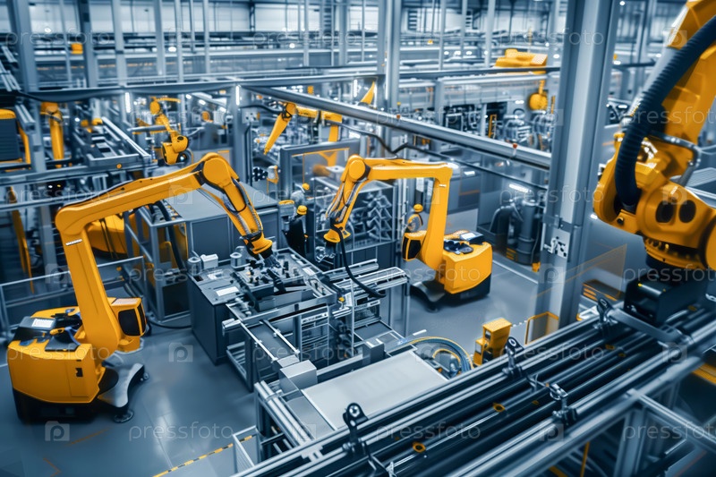 Роботы и машины в высокотехнологичном производстве, эффективно оптимизируя производственные процессы