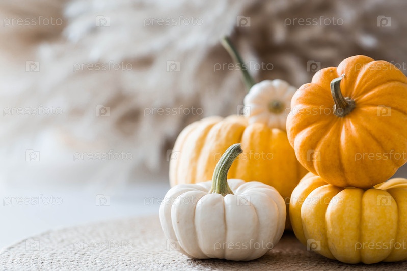 Осенний декор на праздник. Красивые декоративные тыквы. Текстовое пространство. Баннер, фон и флаер для торжеств Хэллоуина
