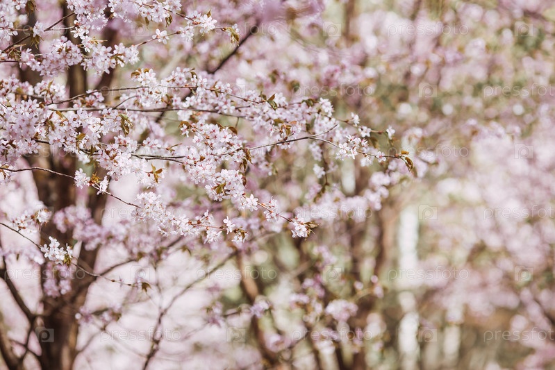 Розовые вишневые цветки.Весна, природа оживает.Японские вишни цветут в весеннем саду.Цветы на ветках деревьев в японском парке