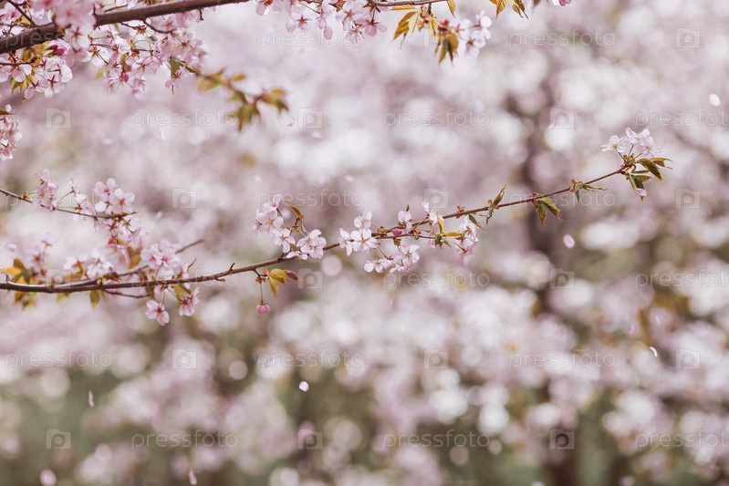 Розовые вишневые цветки.Весна, природа оживает.Японские вишни цветут в весеннем саду.Цветы на ветках деревьев в японском парке