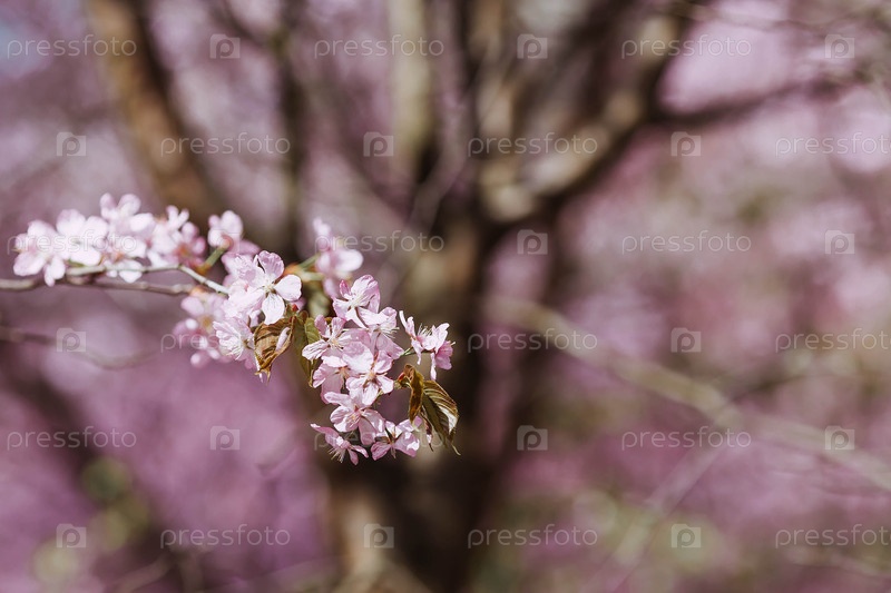 Розовые вишневые цветки.Весна, природа оживает.Японские вишни цветут в весеннем саду.Цветы на ветках деревьев в японском парке