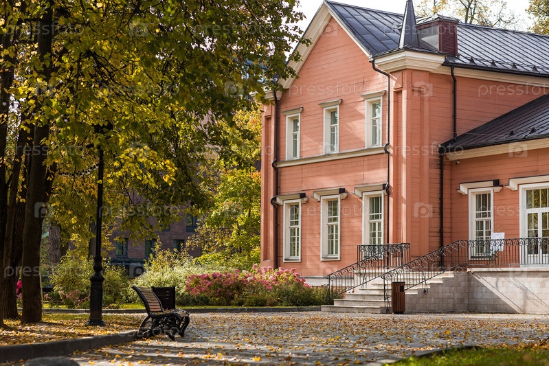Улицы Видное под Москвой Красивое осеннее поместье с желтыми деревьями в солнечный осенний день городской пейзаж